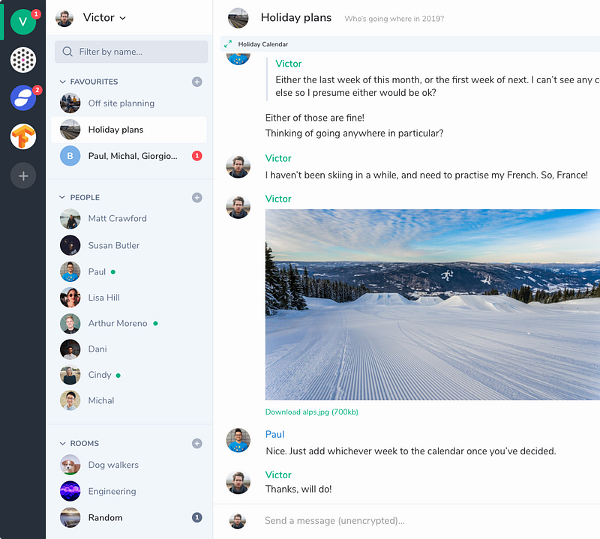 Installing a native Chat app on your mobile device allows you to receive notifications when people are trying to reach you even when you’re not using the app. Using the Chat server in a web browser requires the page to remain open in order to receive notifications.