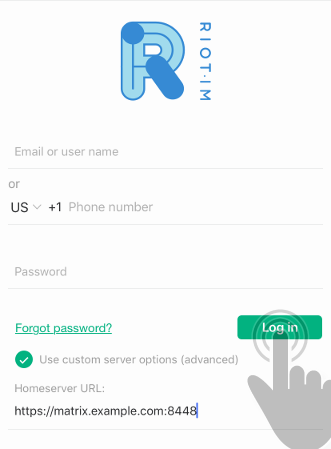 Check the Use custom server options (advanced) box and set Homeserver URL to
