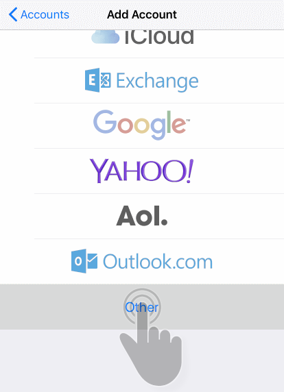 At the bottom of the list of email account types, tap Other.
