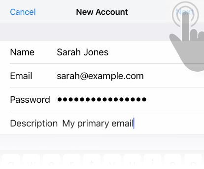 Tap Next at the upper right. Your phone will verify your account information.