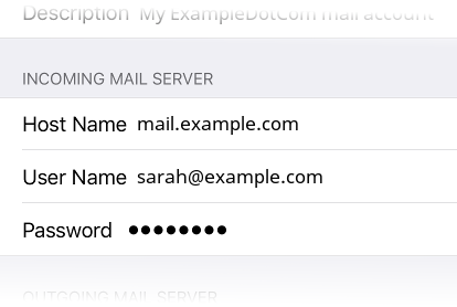Below your basic account info, fill in the incoming mail server fields: