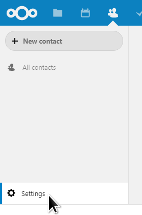 1. In the Cloud server Contacts app, click on Settings at the bottom-left corner of the page.