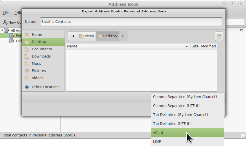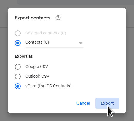 Export Contacts in vCard (.vcf) Format