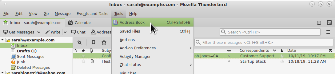 1. Go to the Address Book in Thunderbird (Tools menu > Address Book).